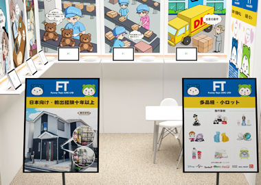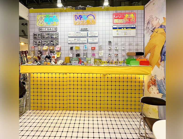 中国に本社を置くFunny Toys CN社の100%出資子会社として、日本法人向けにキャラクター・コンサートグッズなどの各種雑貨類の企画販売を手掛けています。取扱品はフィギア、アクリルスタンド、キーホルダー、ストラップなど多岐に亘り、デザインはキャラクターデザインに長年携わった当社グループの従業員が対応しています。また、製造は親会社所有の中国工場のほか、同社経由の協力工場で賄っており、デザインから製造、生産まで一貫して行うことで不具合が起きた場合でも迅速に対応できる点が当社の強みです。